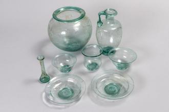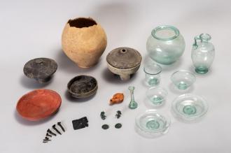 V grobni jami je bilo najdenih 8 steklenih in 5 keramičnih posod, rimska oljenka, fibuli v obliki žabic, 2 rimska novca, kovinska ploščica in ostanki žebljev.