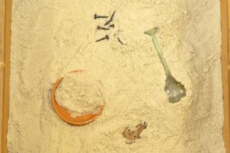 Obdobje rimske kulture si učenci približajo z ogledom značilnih predmetov iz tega obdobja, kot so oljenke, rimski novci, izdelki iz stekla. Ob arheoloških najdbah se pogovarjamo o takratnem življenju, ob najdbah iz grobov pa o pogrebnih praksah. Učenci se še preizkusijo v vlogi arheologa: v arheopeskovniku raziščejo kopije nekaterih predmetov in ugotavljajo njihovo namembnost. Učno uro zaključimo z ogledom rimskega nagrobnika na grajskem stopnišču, na katerem so natančno izklesani trije davni prebivalci iz tega časa.