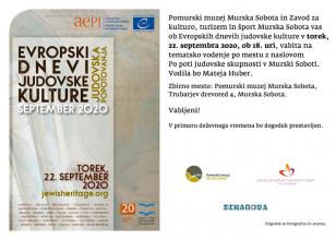 Pomurski muzej Murska Sobota je v okviru programa EDJK 2020 izvedel vodeni sprehod Po poti judovske skupnosti v Murski Soboti. Program je pripravila Mateja Huber.