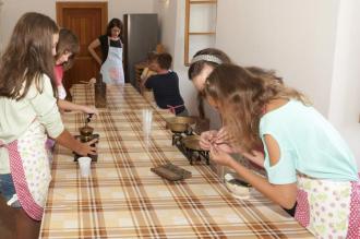 Otroci praktično preizkušajo uporabo nekaterih starih kuhinjskih pripomočkov: na kuhinjski tehtnici na uteži stehtajo mak in ga stolčejo v lesenem možnarju, s pinjo izdelajo maslo, v kavnem mlinčku zmeljejo kavo. Po dogovoru lahko s temi sestavinami pripravimo makove rezance. Izvedba je možna v skupini do 15 oseb.