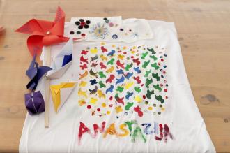 Originalni motivi iz starih šablon, s katerimi so pleskarji v Pomurju nekdaj pleskali na stene sob, so v okviru delavnice uporabljeni kot šablona za izdelavo odtisov na papir ali na bombažne majice. Slednje je treba prinesti s seboj.