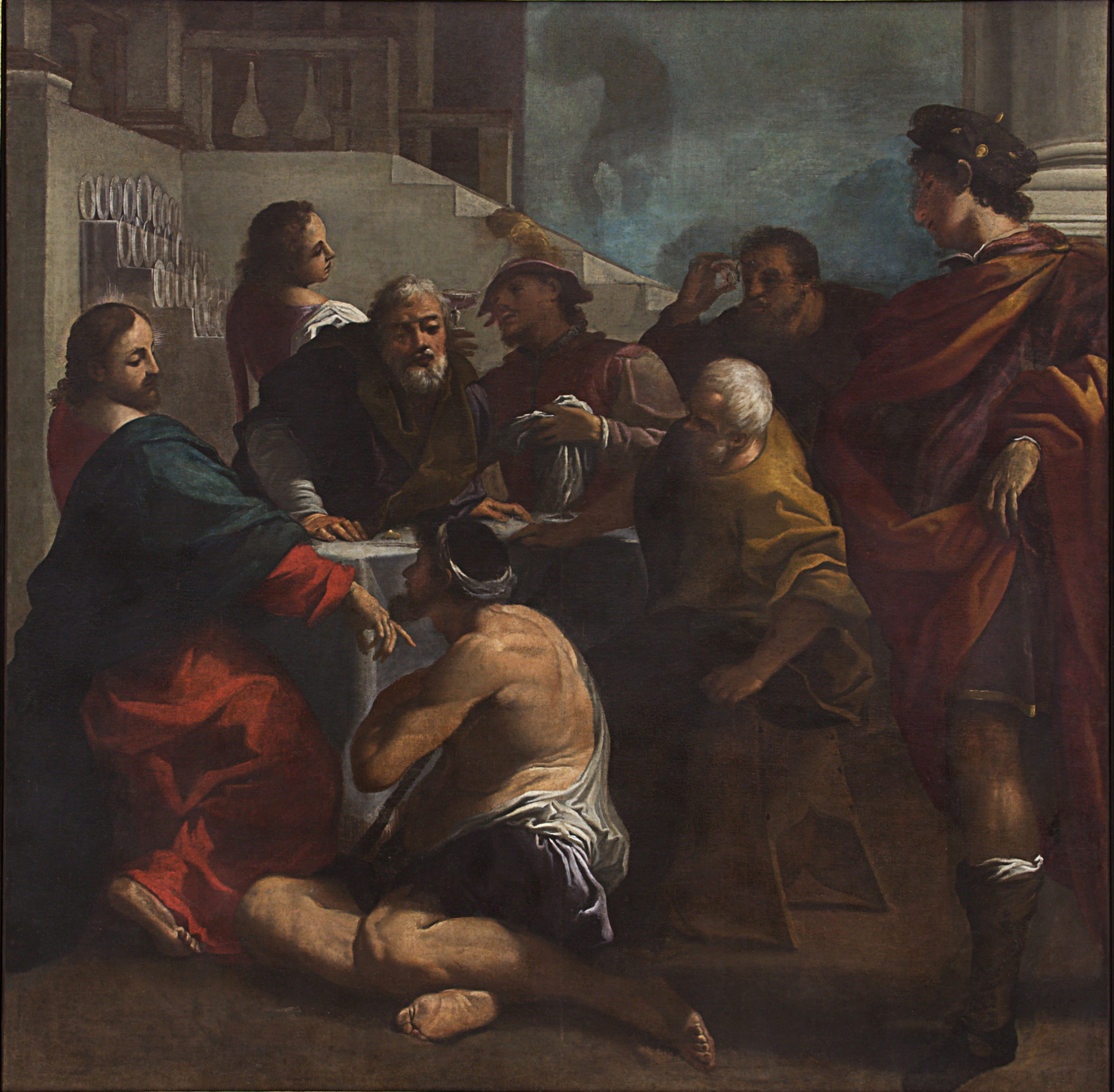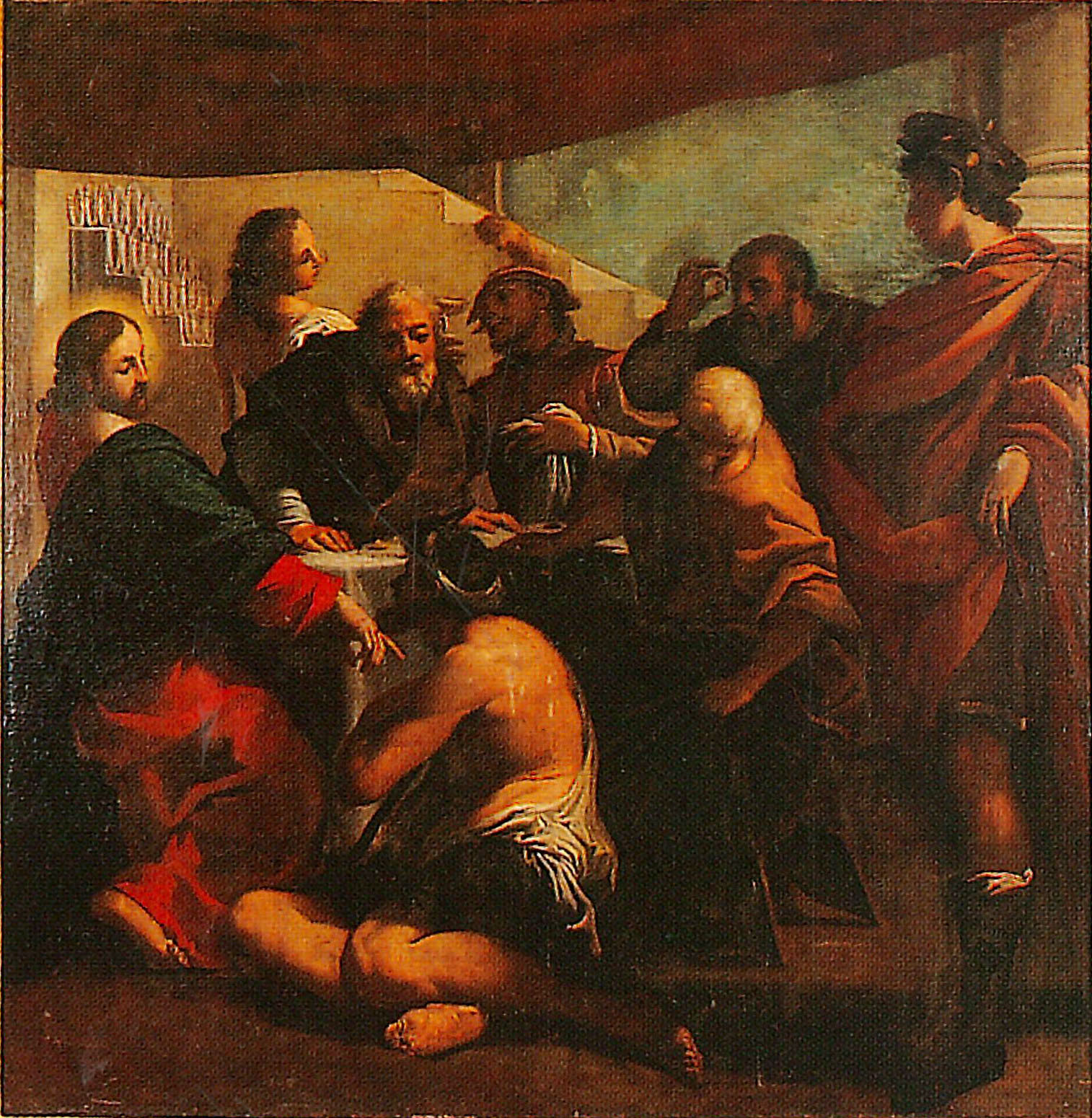Slika izvira iz palače Morosini v Benetkah, kjer jo je leta 1894 na dražbi kupil grof Geza Szapáry in z njo opremil svojo rezidenco v Murski Soboti. Upodablja enega od Jezusovih čudežev, ko le-ta z iztegnjeno roko ozdravlja hromega moža, ki sedi na tleh pred njim.